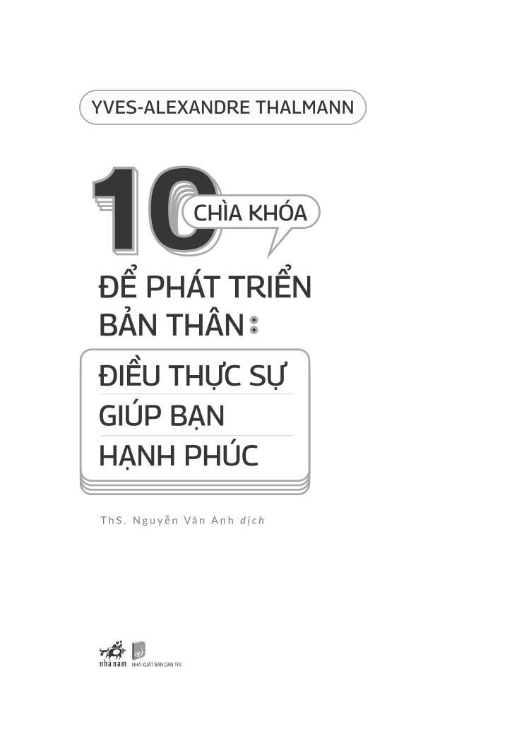 Trong cuốn sách 10 chìa khóa phát triển bản thân. Điều thực sự giúp bạn hạnh phúc, dựa trên những khám phá mới nhất trong lĩnh vực tâm lý học và khoa học nhận thức, Yves-Alexandre Thalmann đã vén bức màn về những niềm tin vô căn cứ đang dần đưa bạn cách xa cánh cửa của hạnh phúc.