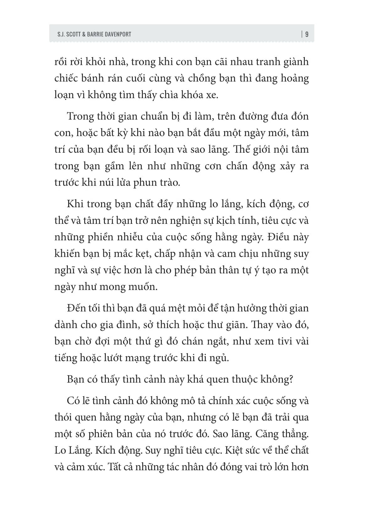 Bạn bước ra khỏi phòng tắm để xem chiếc điện thoại đang rung chuông báo tin nhắn và thư điện tử. Tim bạn đập nhanh, có một sự lo lắng mơ hồ lướt qua khiến bạn bồn chồn như khi uống một cốc cà phê đậm đặc. Bạn lao nhanh vào bếp làm vội suất ăn sáng rồi rời khỏi nhà, trong khi con bạn cãi nhau tranh giành chiếc bánh rán cuối cùng và chồng bạn thì đang hoảng loạn vì không tìm thấy chìa khóa xe. Vậy là bất kỳ khi nào bạn bắt đầu một ngày mới, tâm trí của bạn đều bị rối loạn và sao lãng. Thế giới nội tâm trong bạn gầm lên như những cơn chấn động xảy ra trước khi núi lửa phun trào.