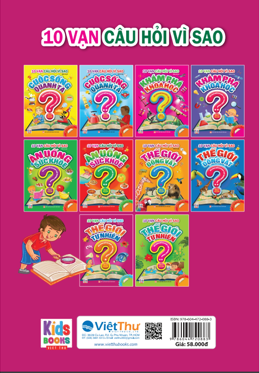 Trẻ em luôn tò mò và muốn tìm hiểu thêm về thế giới và những điều kỳ lạ xung quanh. Bé sẽ đặt rất nhiều những câu hỏi như "Vì sao?" với mong muốn được giải đáp. Bộ sách 10 vạn câu hỏi vì sao sẽ có câu trả lời cho các câu hỏi của bé xoay quanh chủ đề quen thuộc như Cuộc sống quanh ta, Ăn uống & Sức khỏe, Khám phá khoa học, Thế giới động vật, Thế giới tự nhiên. Bộ sách này sẽ là món quà tuyệt vời và ý nghĩa dành cho các bé.