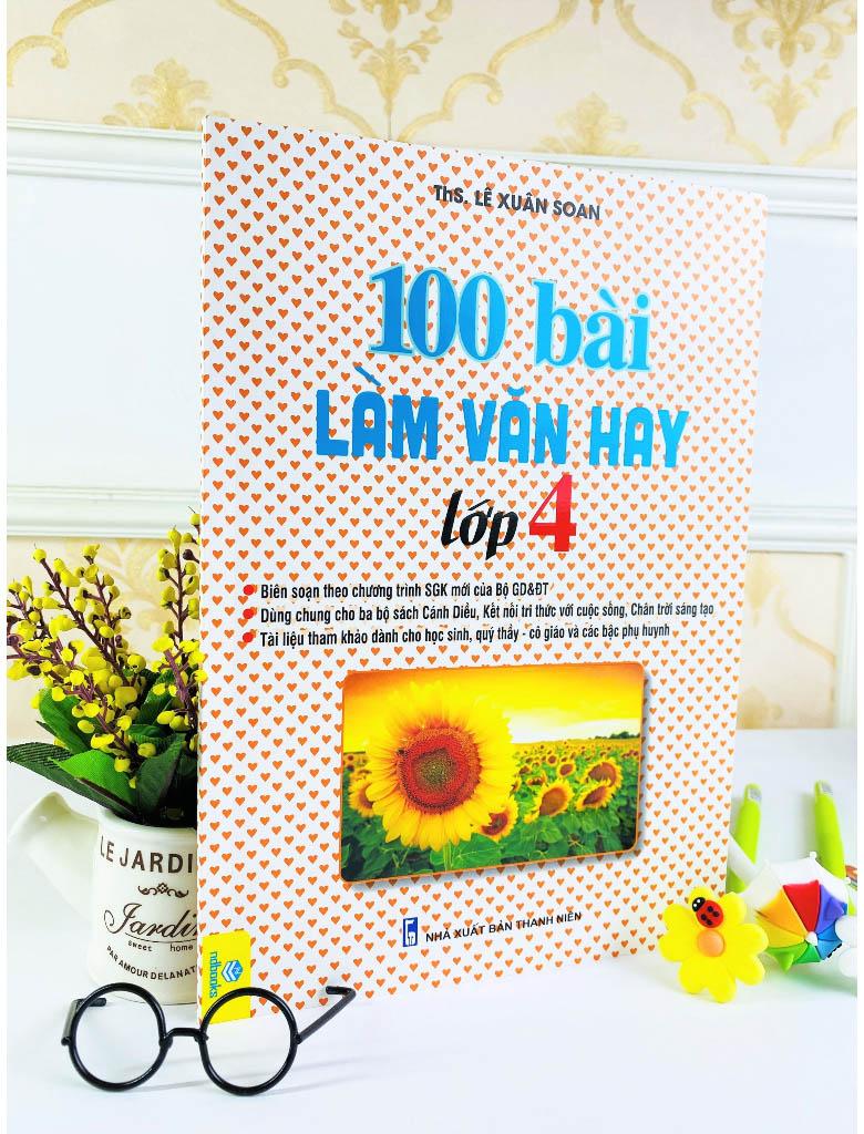 100 Bài Làm Văn Hay Lớp 4 100 Bài làm văn hay lớp 4 được biên soạn theo chương trình mới của Bộ giáo dục và đào tạo. Nhằm giúp các em có tài liệu tham khảo, luyện tập chuẩn bị tốt cho các bài tập làm văn. Các em sẽ được làm quen những dạng bào văn như kể chuyện, miêu tả, viết thư về cuộc sống quanh em, những người thân yêu trong gia đình, thầy cô, mái trường, quê hương m.ình, Đây là tài liệu dùng cho cả 3 bộ sách: Cánh Diều, Kết Nối, Chân trời sáng tạo.