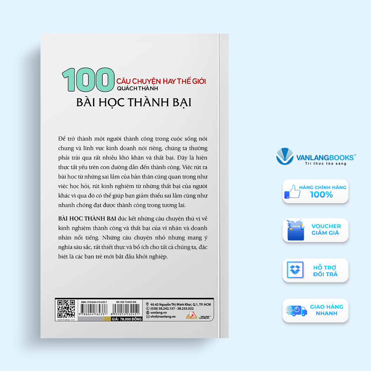 BÀI HỌC THÀNH BẠI đúc kết những câu chuyện thú vị về kinh nghiệm thành công và thất bại của vĩ nhân và doanh nhân nổi tiếng. Những câu chuyện nhỏ nhưng mang ý nghĩa sâu sắc, rất thiết thực và bổ ích cho tất cả chúng ta, đặc biệt là các bạn trẻ mới bắt đầu khởi nghiệp.