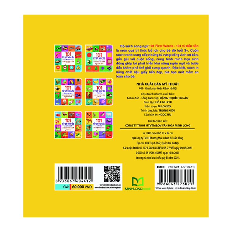 101 First Words/ 101 từ đầu tiên là những cuốn sách Anh – Việt vô cùng bổ ích dành cho các bé từ 2 đến 7 tuổi bắt đầu tập nói tiếng Anh. Bé sẽ được phát triển vốn từ tiếng Anh thông qua các chủ đề gần gũi như Giao thông, Bảng chữ cái, Các vật dụng trong nhà hay các chủ đề mang tính khám phá như Động vật… Không những thế, việc chọn lựa phương pháp chuyển tải thú vị của cuốn sách đã mở ra cho các em một thế giới hình ảnh sinh động và đầy màu sắc, giúp bé tiếp thu kiến thức và ghi nhớ dễ dàng hơn.