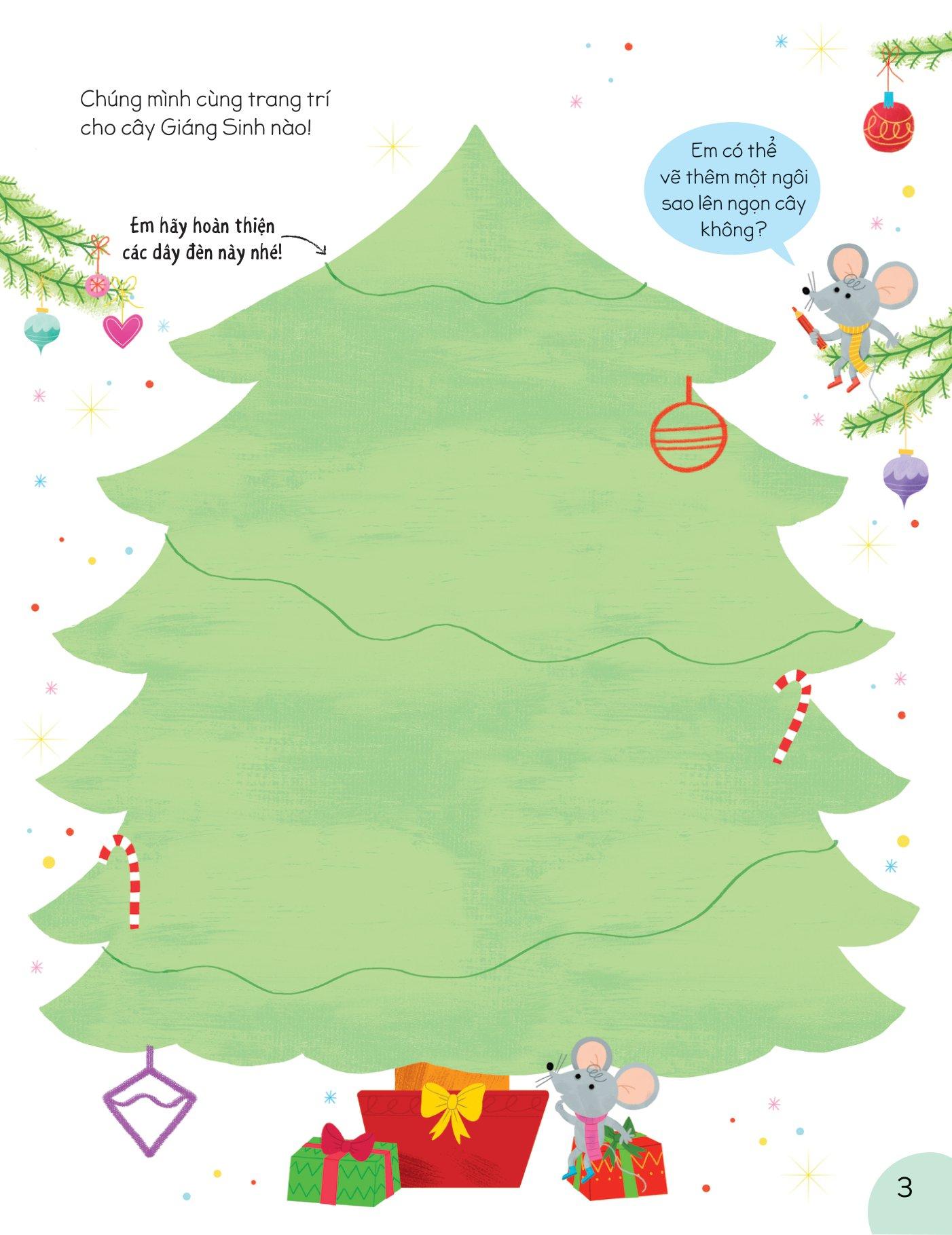 Ngoài ra còn rất nhiều các hoạt động khác như: Giải ô chữ, nối số, vẽ tranh, giải mã mê cung… đang chờ bạn nhỏ khám phá trong cuốn sách này đấy! Hãy cùng thỏa sức sáng tạo để làm nên một mùa Giáng Sinh thật diệu kỳ nhé!