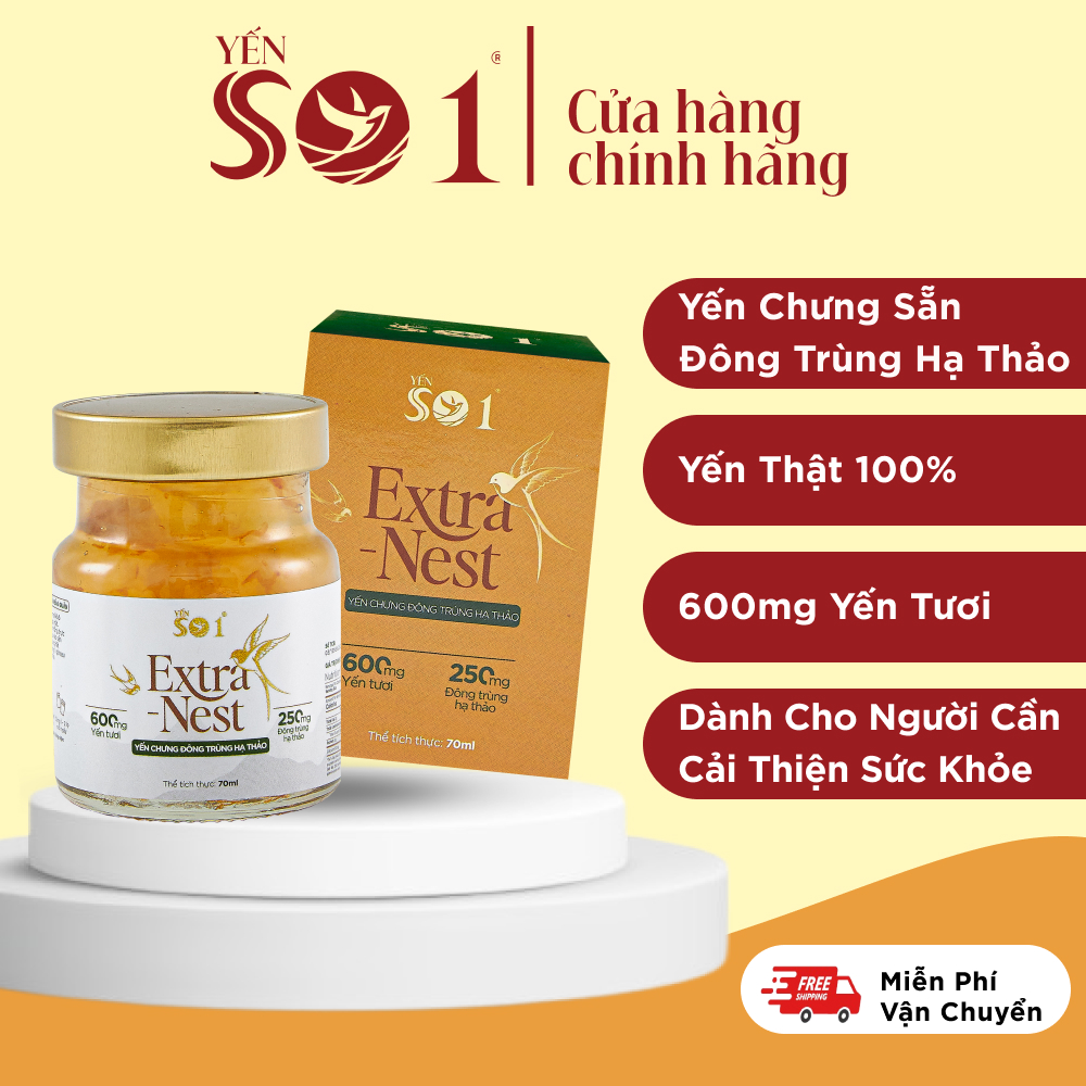 - Cải thiện chức năng não bộ và sự phục hồi cơ bắp Yến Sào Số 1 tự hào về sự ưu ái của thiên nhiên khi Việt Nam là một trong những nơi phù hợp nhất để nuôi yến trên Thế Giới. Chúng mình có những trại nuôi Yến chất lượng và có nguồn gốc rõ ràng. Yến Số 1 với sự đầu tư nghiêm túc và chuyên sâu trong việc chế biến và kiểm soát chất lượng trên từng sản phẩm, các sản phẩm Yến chưng sẵn luôn mang đậm phong vị Yến sào Việt Nam. Đặc biệt với công nghệ tiệt trùng kết hợp giữa nhiệt độ và áp suất tiêu chuẩn, từng sợi Yến luôn giữ được giá trị dinh dưỡng nguyên khởi. Với sự kết hợp này, bạn sẽ cảm nhận rõ rệt sự cải thiện về sức khỏe và tinh thần. HÃY ĐẶT MUA YẾN ĐÔNG TRÙNG HẠ THẢO ĐỂ TRẢI NGHIỆM NGAY NHỮNG LỢI ÍCH TUYỆT VỜI MÀ SẢN PHẨM MANG LẠI! THÔNG TIN SẢN PHẨM: