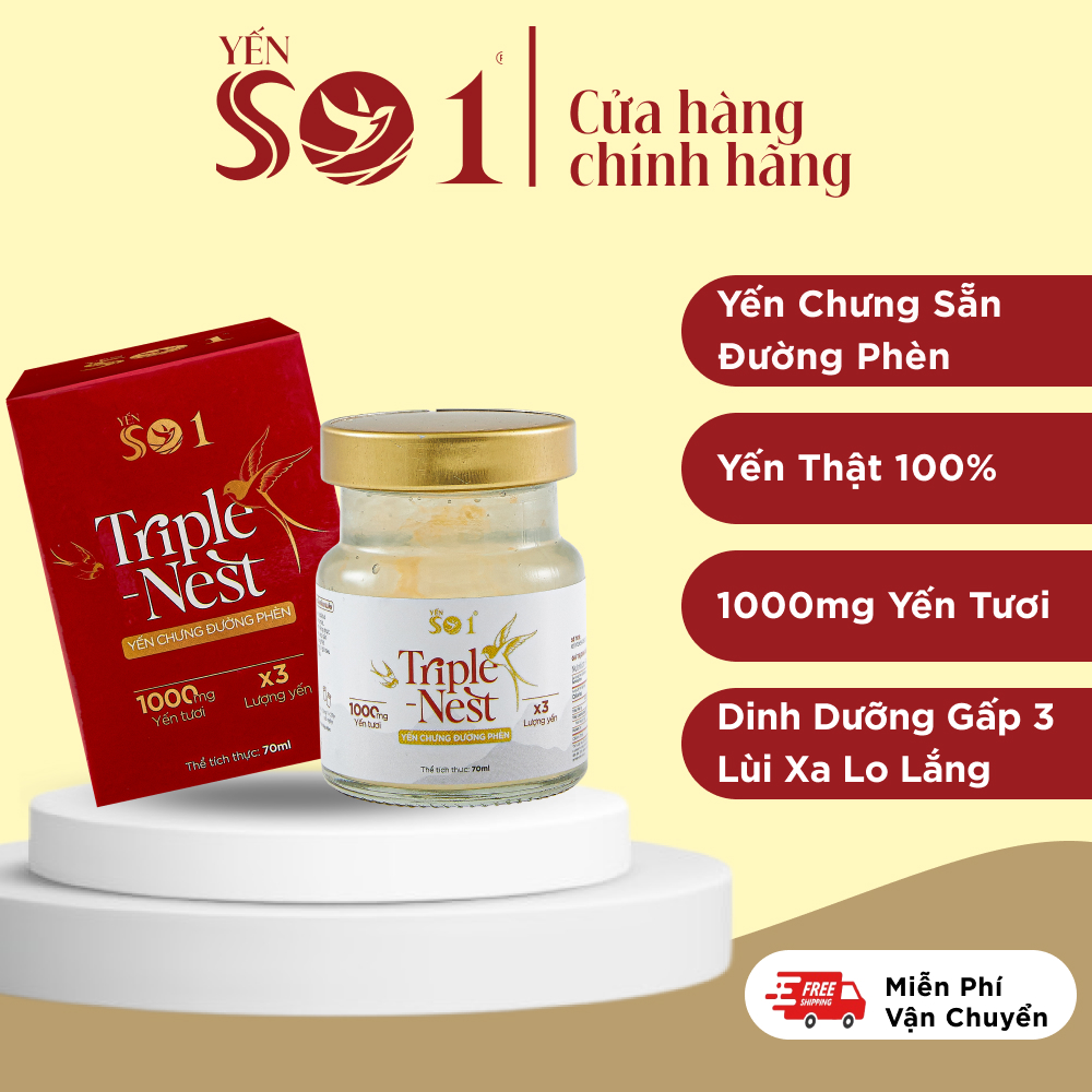 Bạn đang tìm một sản phẩm Yến hũ chưng sẵn có lượng Yến sào vượt trội. Yến Số 1 tăng cường lượng Yến trong mỗi hũ Đường Phèn lên tới gấp 3 lần. Chăm sóc sức khỏe của bạn giờ đây thật dễ dàng và tiện lợi hơn bao giờ hết. Hãy để tụi mình giới thiệu về Triple Nest Đường Phèn - một sản phẩm độc đáo được chế biến và kiểm soát chất lượng trên từng sản phẩm nhằm đáp ứng nhu cầu dinh dưỡng cao của bạn. Sự cân bằng tỉ lệ cẩn thận làm giàu năng lượng hơn với ba lần lượng Yến sào so với các sản phẩm thông thường. Hãy hình dung mỗi buổi sáng thức dậy, mở tủ lạnh ra và bạn có ngay một hũ Yến chưng sẵn màu sắc óng ánh vàng nhẹ xen kẽ các sợi Yến trắng ngà, mỗi muỗng Yến khiến vị giác bạn mát lạnh, ngọt thanh, cơ thể như bừng tỉnh, năng lượng len lỏi nuôi dưỡng cả cơ thể từ bên trong. Một ngày tràn đầy năng lượng giờ đây không còn quá phức tạp như bạn nghĩ. Với mỗi hũ Yến, bạn đã giúp bản thân: