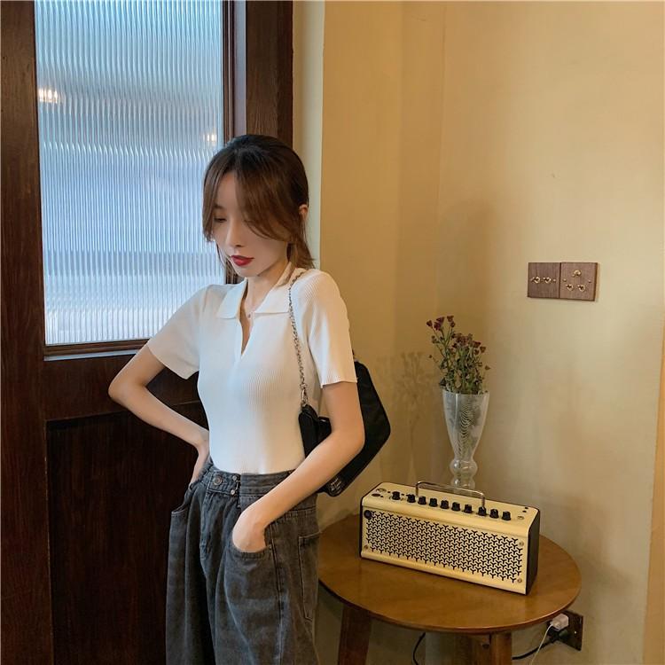Áo Polo Croptop tay ngắn thời trang Quảng Châu có cổ ôm dáng thon gọn sang chảnh này bạn có thể kết hợp với quần jean, quần ống rộđều rất đẹp và cá tính đó!