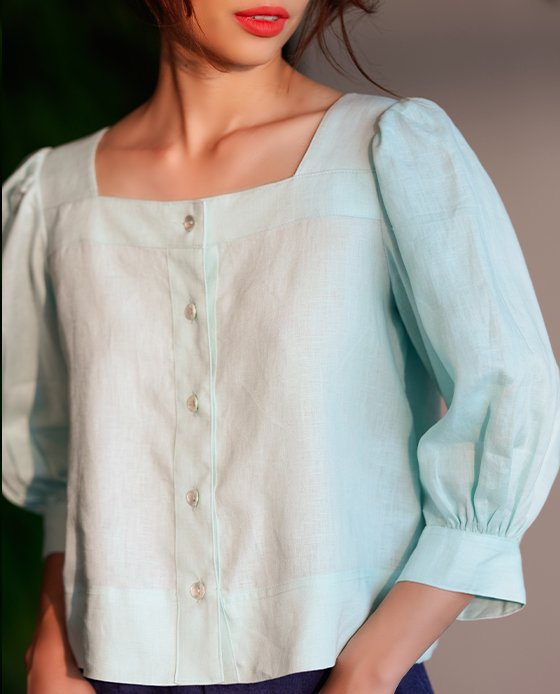 Áo Croptop Linen Aqua TOP132 Thời trang thiết kế Hity