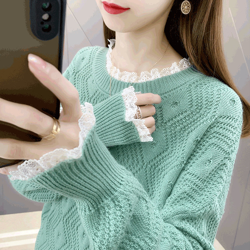 ✨Áo Dệt Kim, Áo Len Dài Tay Dáng Rộng Cổ Trofn Pha Ren Thời Trang Hàn Quốc Cho Nữ Mùa Thu Đông Haint Boutique