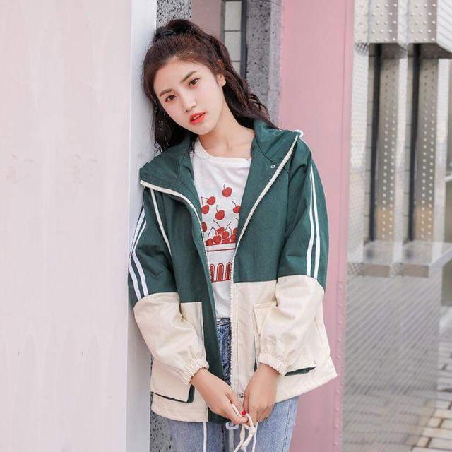 ✨ÁO KHOÁC DÙ 2 LỚP CÓ NÓN CHẠY SỌC TAY Y HÌNH THỜI TRANG NỮ