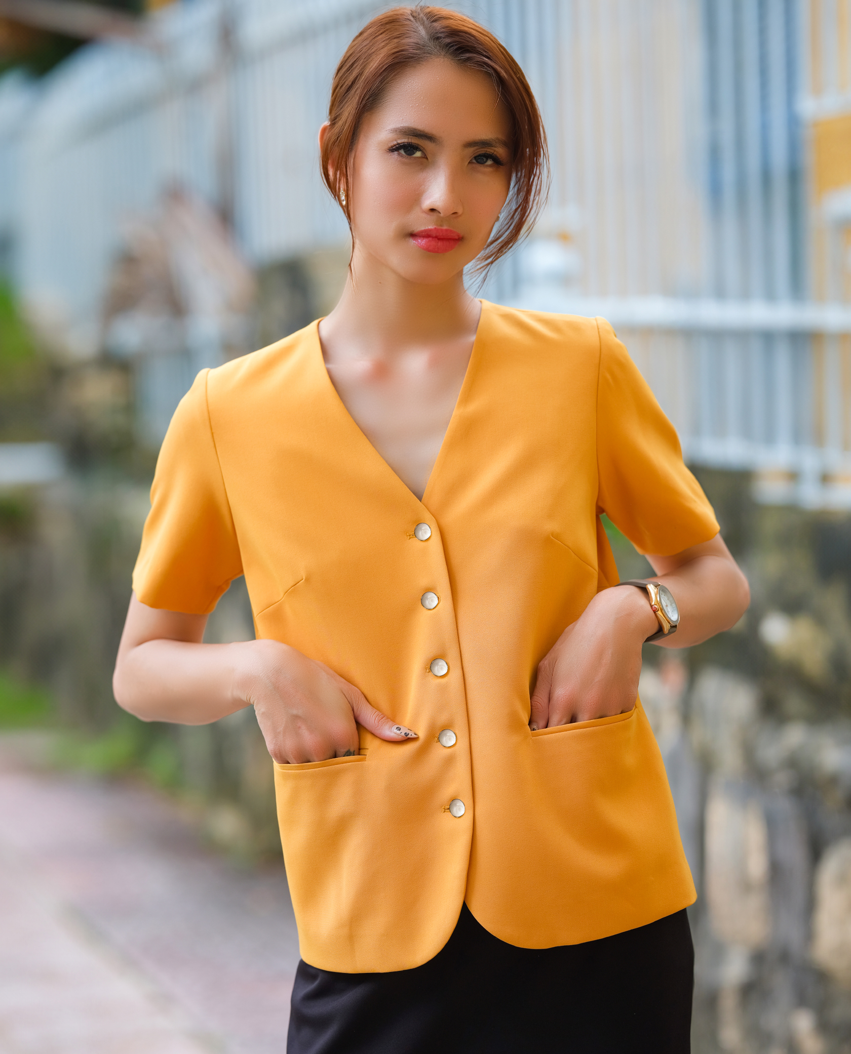 Áo Khoác Jacket Hoàng TOP167 thời trang thiết kế Hity Ở xứ nhiệt đới, sắc vàng, thường gắn với hai chữ hoàng kim, ngày xưa ở phương Đông chúng ta là sắc màu của Hoàng gia. Vàng tượng trưng màu của hành thổ, của vị trí trung tâm trên mặt đất. Vàng là màu của kim loại, ngụ ý mong đất nước của mình luôn được phồn thịnh, nhiều vàng, nhiều của. Vàng là một màu sắc tươi sáng và rực rỡ, tượng trưng cho niềm vui, hạnh phúc và sự lạc quan. Nó cũng là một màu sắc có thể thu hút sự chú ý và khiến người mặc trở nên nổi bật hơn. Trang phục màu vàng có thể phù hợp với mọi dịp, từ những buổi dạ tiệc sang trọng đến những ngày đi dạo phố bình thường. Ngày nay, trang phục màu vàng là một lựa chọn tuyệt vời cho những Quý cô muốn thể hiện sự vui vẻ, lạc quan, sáng tạo và thành công. Một Quý cô trong trang phục áo khoác jacket vàng là một hình ảnh vô cùng quyến rũ và mê hoặc. Áo khoác jacket vàng mang lại cảm giác ấm áp và sang trọng, dễ dàng kết hợp với chân váy, đầm ôm, shorts, quần dài tạo nên các phong cách phù hợp, hài hoà theo từng sự kiện. Dưới đây là một số gợi ý về cách phối đồ với trang phục màu vàng: