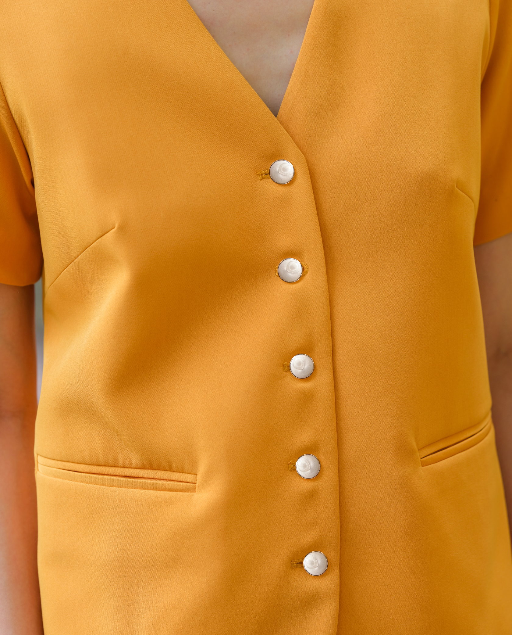 Áo khoác vàng + váy ngắn: Đây là một set đồ vô cùng sexy và quyến rũ. Quý cô có thể chọn một chiếc váy ngắn với họa tiết hoa lá hoặc họa tiết thổ cẩm để kết hợp với áo khoác vàng. Set đồ này sẽ khiến quý cô trông vô cùng xinh đẹp và nổi bật khi đi dự tiệc hay đi chơi. Kiểu dáng áo khoác jacket dáng ngắn, có thể mặc thành jacket hoặc áo blouse Cổ V Tay ngắn Có 2 túi viền phía trước Cài bằng 5 nút ánh ngọc trai viền vàng ánh kim phía trước Có lót trong Chất liệu: Chất liệu chính: Cotton Cashmere Chất liệu lót lót: Cotton Nghệ nhân: Ninh Trung, hơn 25 năm kinh nghiệm điêu luyện đo cắt may cá nhân hoá trang phục vest, dạ hội cao cấp Cắt may thủ công tinh tế ứng dụng kỹ thuật may vest cao cấp tại Hity Atelier, Nha Trang, Việt Nam. Tại Hity, chúng tôi không ngừng nỗ lực tìm kiếm và ứng dụng các chất liệu có độ an toàn và lành mạnh cho sức khoẻ, thân thiện với làn da, giảm tối đa chất thải nilon nhằm mục đích giảm thiểu tác động của quá trình sản xuất hàng dệt may tới môi trường. Chúng tôi không sử dụng chất liệu có nilon trong tất cả các sản phẩm của mình. Hity sử dụng túi zip tái sử dụng để lưu trữ hàng hoá trong kho, thay vì mỗi sản phẩm lấy ra khỏi kho lại kèm theo một túi nilon thải đi, chúng tôi sử dụng lại túi zip tối thiểu 3 năm. Các bao bì của Hity được tái sản xuất từ vải thừa sau cắt, làm nên những chiếc túi vải xinh xắn và thân thiện. Chúng tôi khuyến khích khách hàng tái sử dụng những chiếc túi vải Hity trong sinh hoạt hằng ngày như đi siêu thị, đi mua sắm, đi du lịch. Hity không in logo trên túi nên quý khách hàng sẽ không e ngại rằng chúng tôi quảng cáo qua việc tặng túi. Chúng tôi đảm bảo các quy trình sản xuất sạch cũng như độ an toàn và tính lành mạnh của các sản phẩm may mặc của mình. Hướng dẫn sử dụng: Để chiếc áo khoác của bạn luôn sạch sẽ, mới đẹp và cùng góp phần bảo vệ môi trường giảm thải quần áo cũ, Ms. Hity khuyến khích bạn chăm sóc đúng cách quần áo của mình:  Giặt bằng tay hoặc giặt hấp  Không sử dụng nước tẩy / thuốc tẩy  Phơi khô, tránh tiếp xúc trực tiếp với ánh nắng mặt trời  Không vắt  Không sấy   Ủi ở nhiệt độ trung bình, tối đa 150 độ C (Chế độ Cotton/ Linen)  Ủi bằng bàn ủi hơi nước