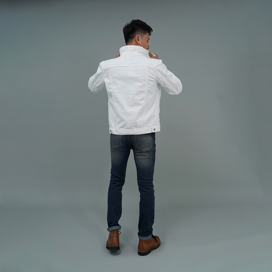 Áo khoác Jean nam tua rua trắng . Thiết kế cực phong cách, tinh nghịch Kết hợp chiếc áo khoác này với đôi giày thể thao nam và mắt kính thời trang Thiết kế khéo léo,