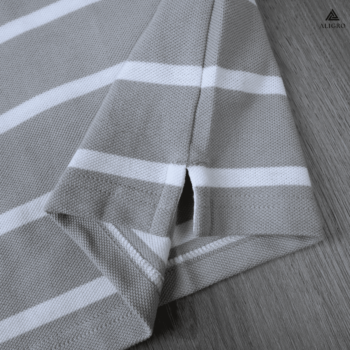 ✨Áo Polo nam ngắn tay kẻ ngang ghi-trắng ALGPLO89