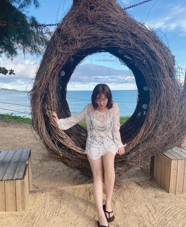 - Mẫu áo ren dài tay mặc cùng bikini, croptop vô cùng xinh xắn.