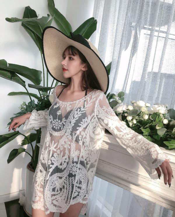 - Mẫu áo ren dài tay mặc cùng bikini, croptop vô cùng xinh xắn. - Giúp các bạn gái tự tin khi diện bikini, lại thêm phần sexy quyến rũ. - Chất ren dày dặn,