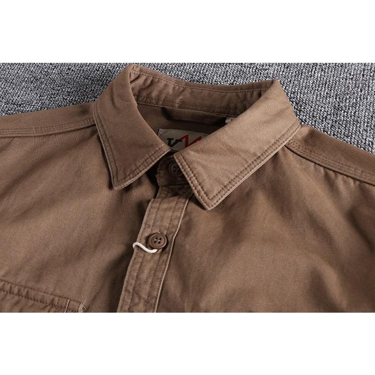 Áo sơ mi túi hộp phong cách Retro lính_dã ngoại Áo sơ mi Wild Casual Màu đang hot lắm ạ Chất kaki được wash acid cực bụi , phom chuẩn mặc rất đẹp ạ Size: