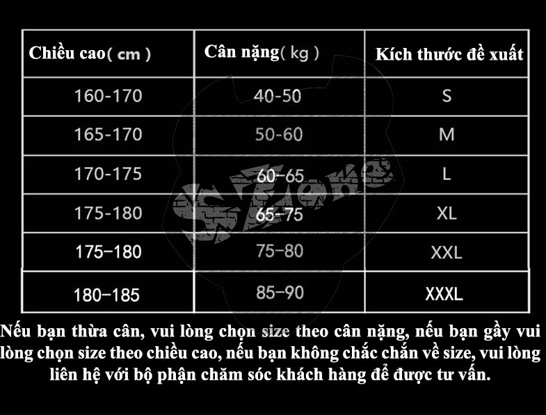 Bảng size: