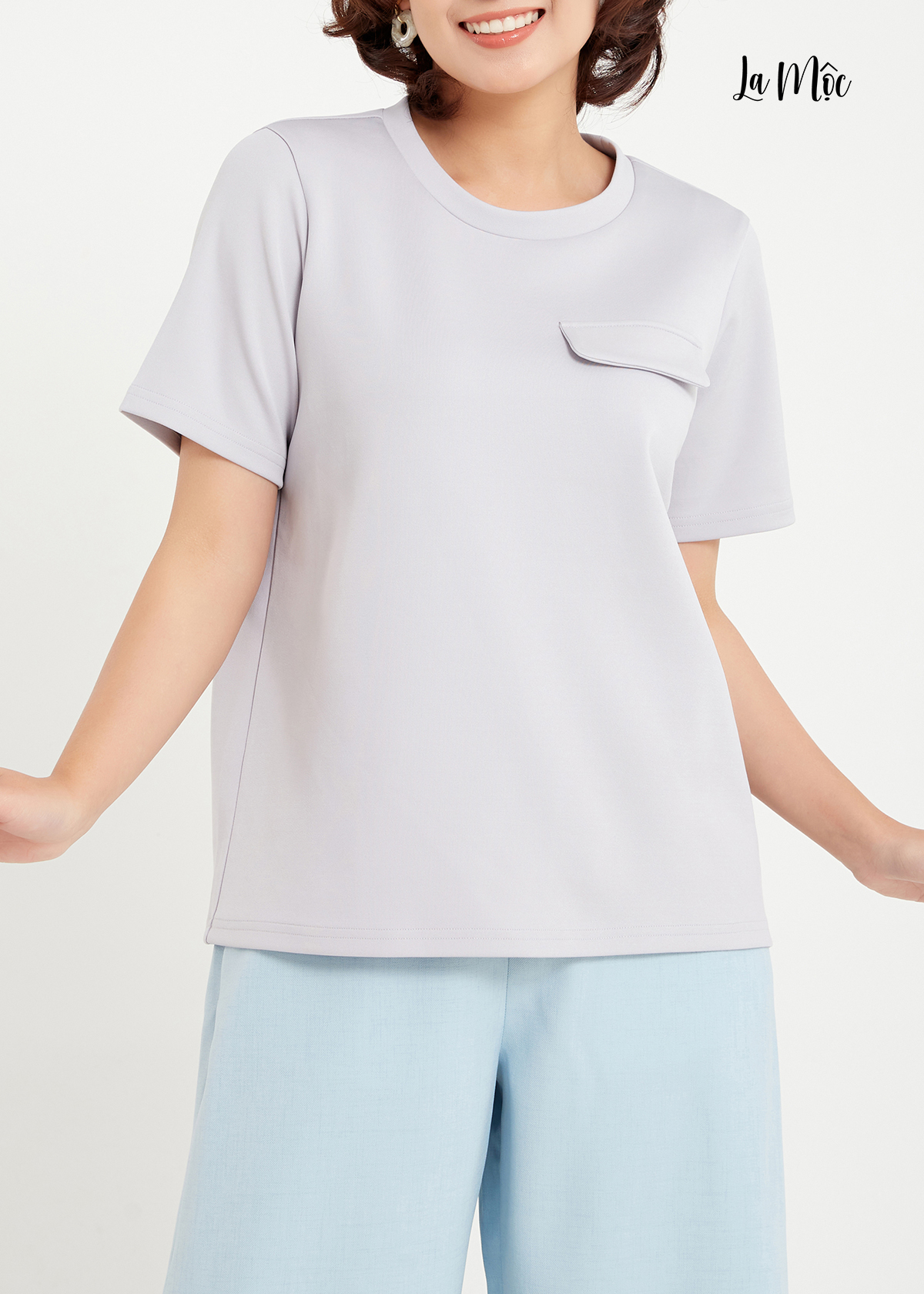 Áo thun nữ, áo thun LA MỘC cổ tròn, nắp đắp túi, chất liệu Cotton poly, lên form chuẩn, hàng thiết kế