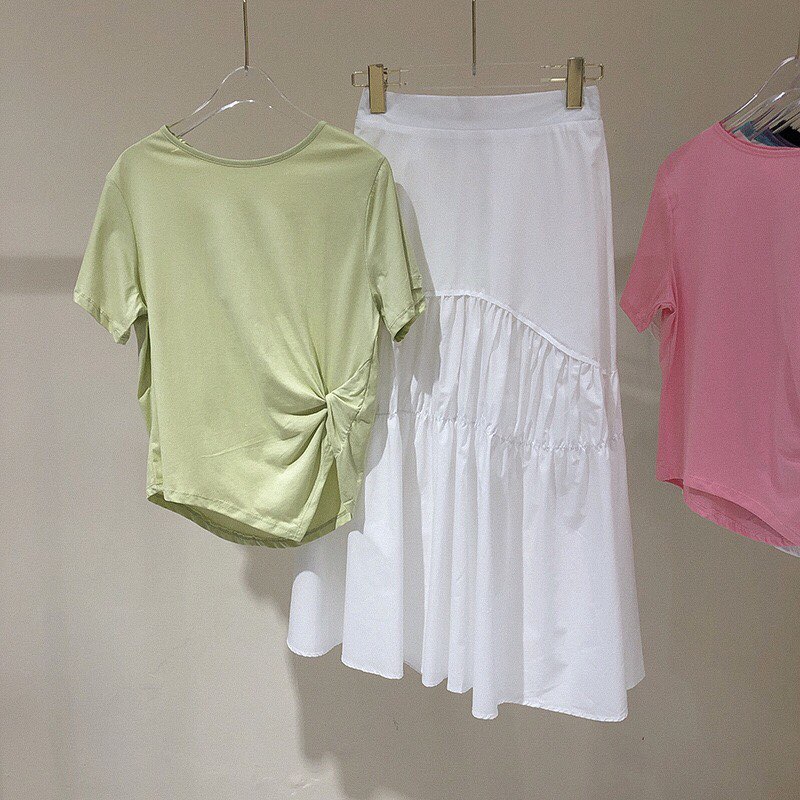 Áo thun ngắn mùa hè 2020 phiên bản Hàn Quốc giản dị cute, chất liệu thoáng mát co giãn tốt mặc rất thoải mái Cổ tròn đơn giản nên cực dễ phối đồ với các