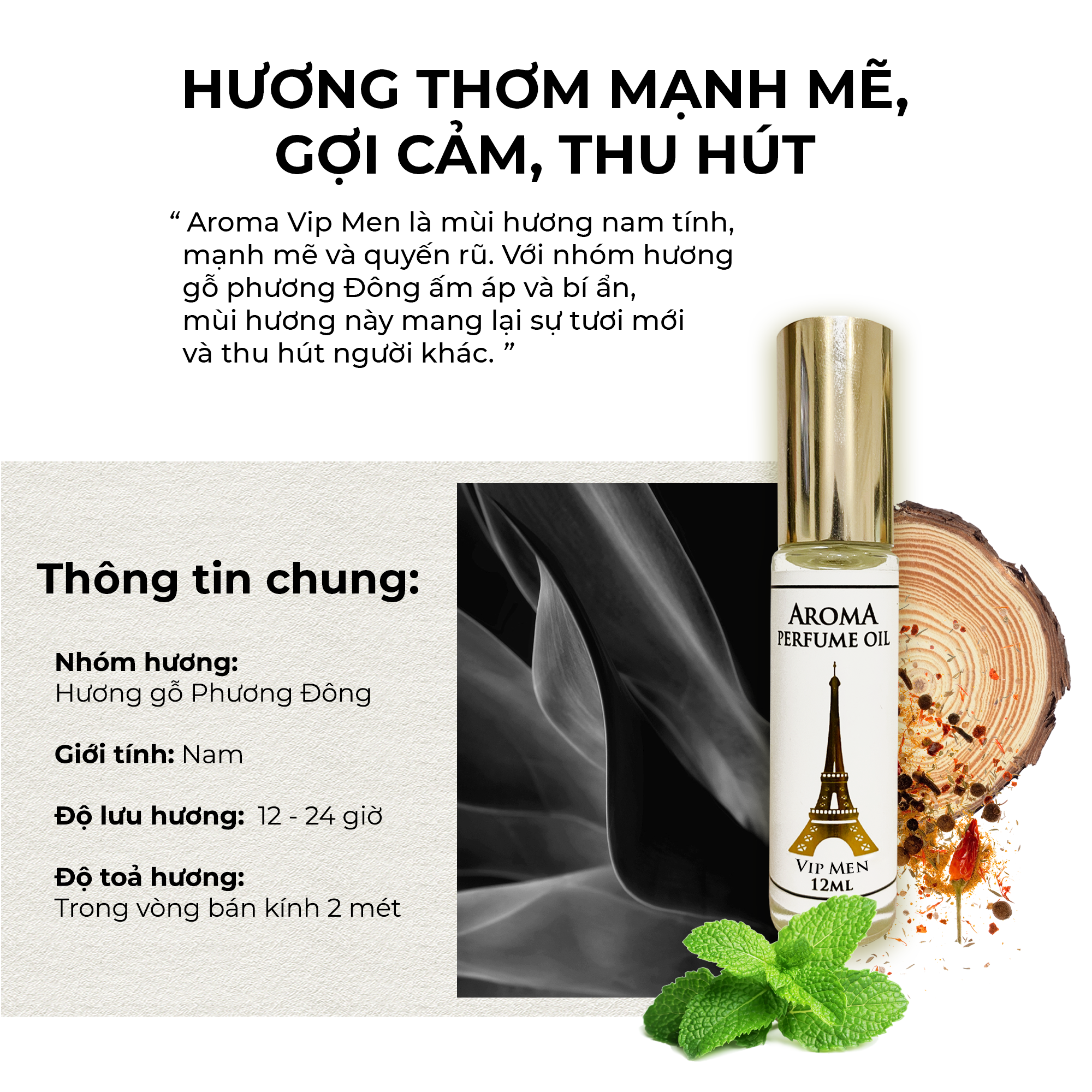 Tinh Dầu Nước Hoa Nam Aroma Vip Men - mùi hương tinh dầu nước hoa Pháp cho nam khiến những cô gái chết mê chết mệt. Aroma Vip Men mang sự nổi loạn nhưng vẫn