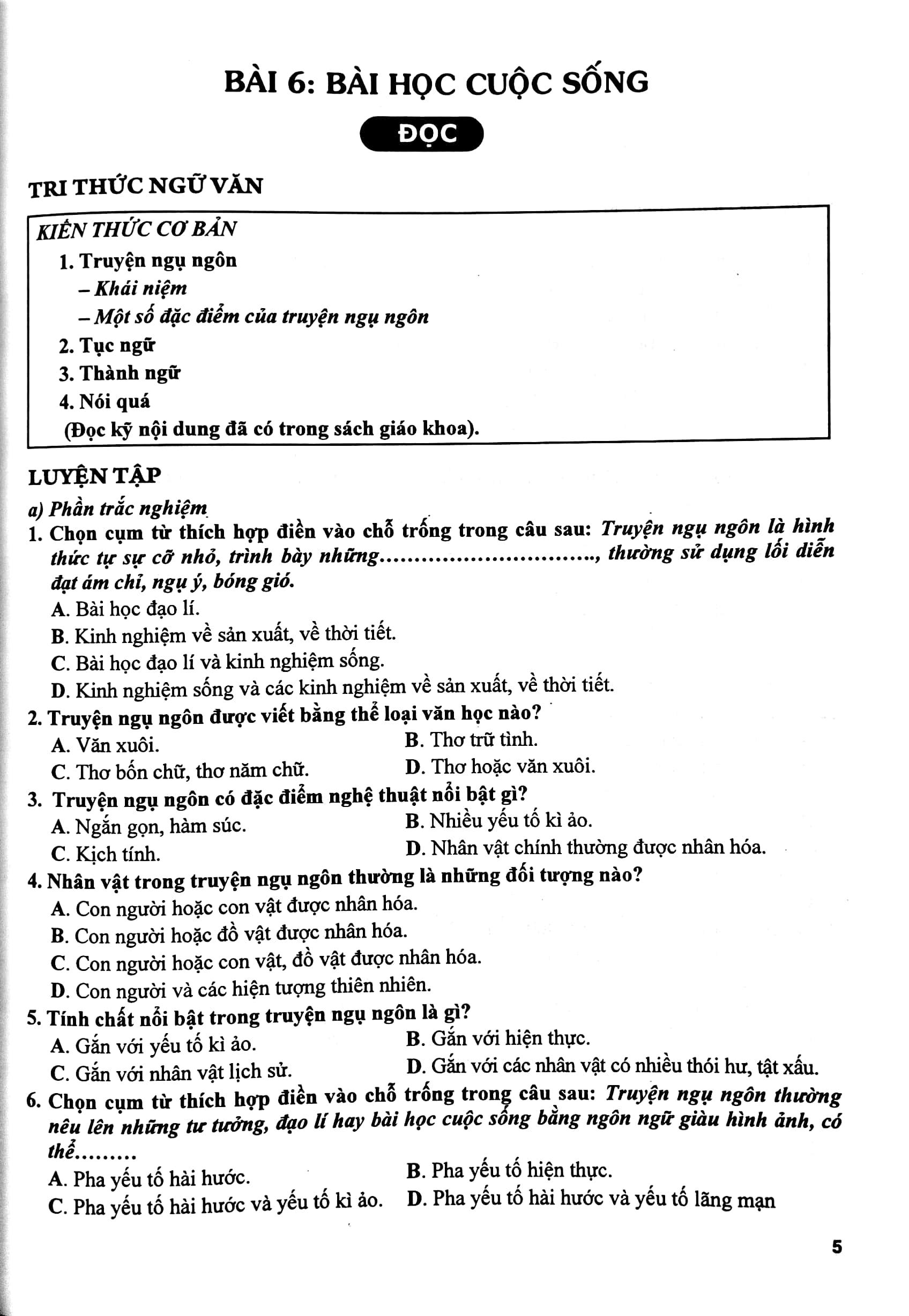 – Phần “Luyện tập” bao gồm các câu hỏi trắc nghiệm khách quan, bài tập tự luận và hướng dẫn luyện tập. Nội dung các “Câu hỏi và bài tập” được biên soạn bám sát các câu hỏi trong sách giáo khoa, có mở rộng, nâng cao theo các kỹ năng đọc, viết, nói và nghe. Nội dung “Hướng dẫn luyện tập” là các gợi ý, chỉ dẫn để học sinh kiểm tra lại kết quả các bài tập các em đã làm. Đặc biệt, với dạng bài tập rèn kỹ năng viết, chúng tôi cung cấp thêm một số đoạn văn, bài văn để học sinh tham khảo. Thông qua các câu hỏi trong “Phiếu học tập”, chúng tôi muốn các em rút ra được bài học về cách làm các kiểu bài sau: Viết bài văn nghị luận về một vấn đề trong đời sống (trình bày ý kiến tán thành); Viết bài văn kể lại một sự việc có liên quan đến một nhân vật lịch sử; Viết bài văn nghị luận về một vấn đề trong đời sống (thể hiện ý kiến phản đối một quan niệm, một cách hiểu khác về vấn đề); Viết bài văn thuyết minh về một quy hoặc luật lệ trong trò chơi hay hoạt động; Viết bài văn phân tích một nhân vật văn học yêu thích trong một cuốn sách đã đọc.