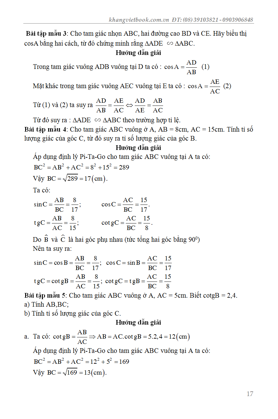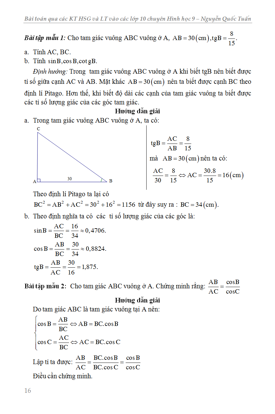 Chương I: Hệ thức lượng trong tam giác vuông
