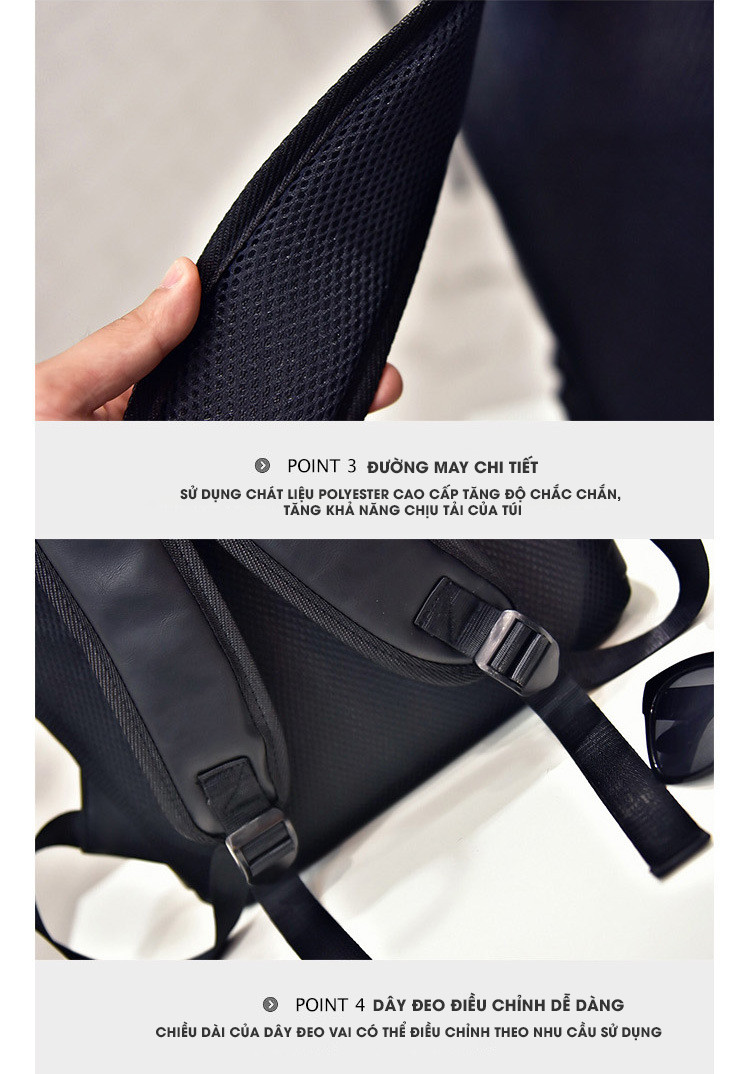 Kích thước : rộng 30cm X cao 44cm X dày 16cm Trọng lượng: 0.7kg Màu sắc: Đen, Trắng, Xám Phương pháp sản xuất: công nghệ cao Chất liệu : Vải OXFORD Chức năng: thoáng khí,