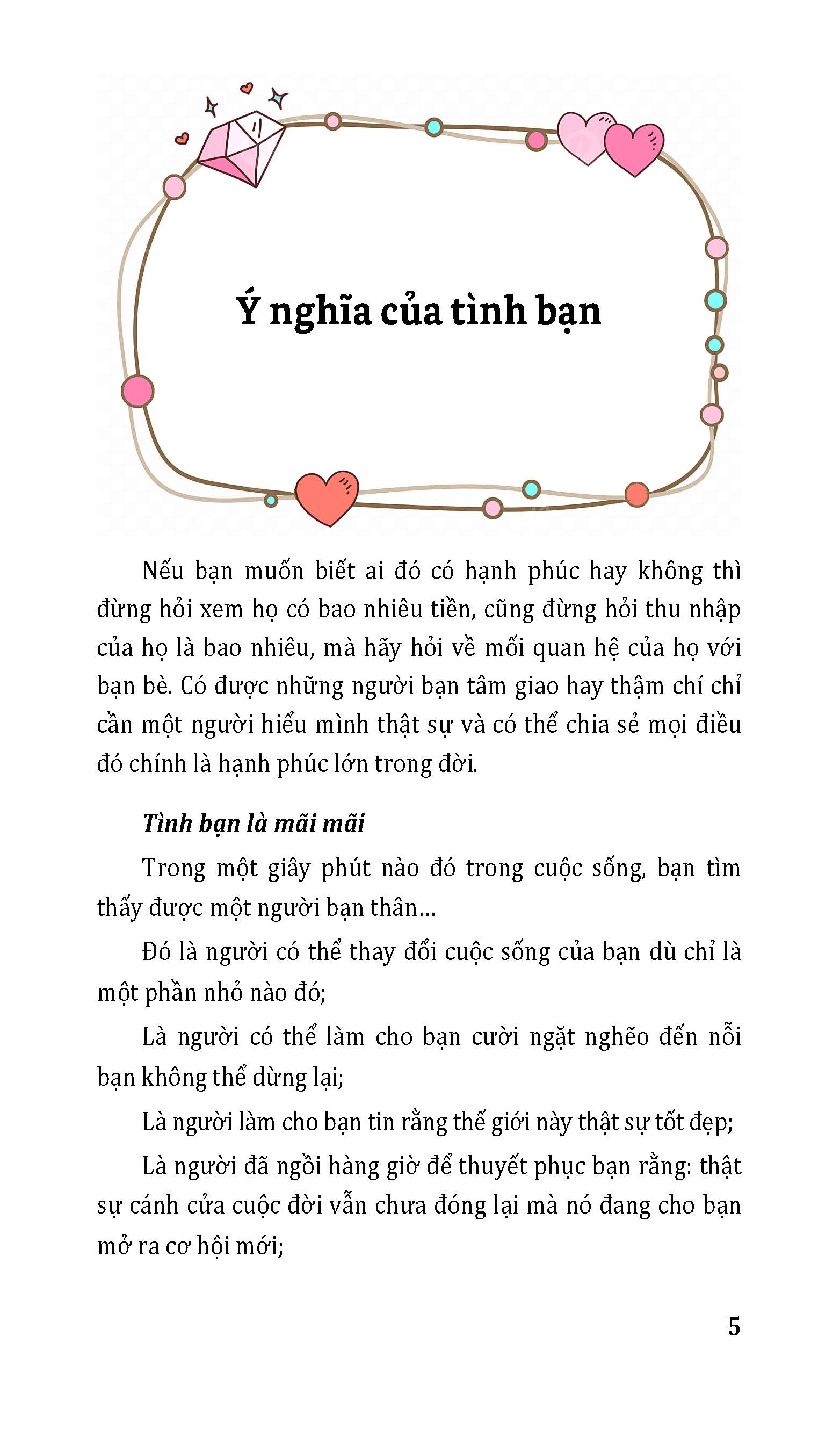 Ý nghĩa và giá trị của tình bạn mang lại sức mạnh tinh thần, đưa con người vào thế giới ngập tràn hạnh phúc, tình yêu thương và sự cảm thông, giúp đỡ lẫn nhaudựa trên sự tôn trọng, chia sẻ và sự quan tâm chân thành để vượt qua khó khăn trên mọi chặng đường của cuộc đời.