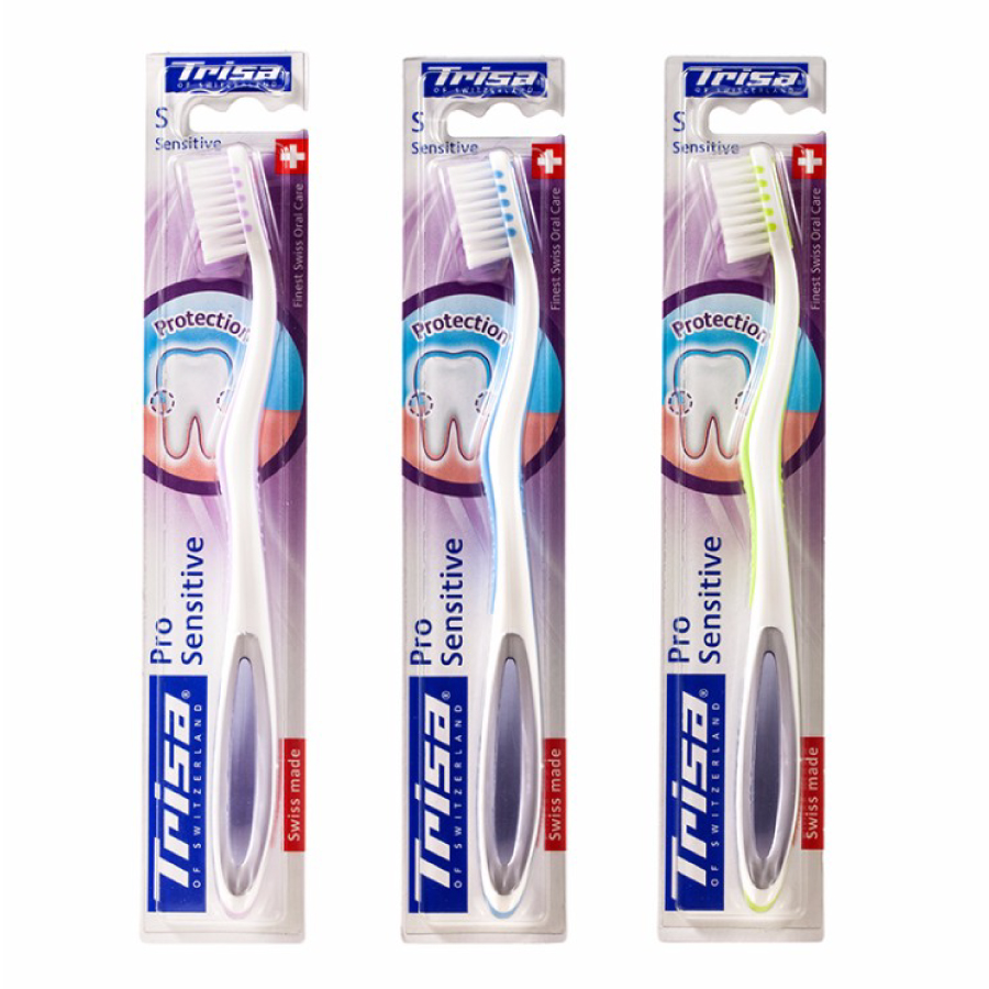 TRISA PRO SENSITIVE - SẢN PHẨM TUYỆT VỜI CHO RĂNG VÀ NƯỚU NHẠY CẢM Để có được nụ cười tỏa nắng thu hút ánh nhìn của những người xung quanh, điều quan trọng nhất cần phải giữ hàm răng luôn trắng đẹp. Đặc biệt đối với những người có răng và nướu nhạy cảm thì việc chải răng phải rất thận trọng, đánh không đúng cách dễ gây chảy máu nướu răng, đau nhức. Chính vì điều đó bàn chải đánh răng Trisa Pro Sensitive được thiết kế để dành riêng cho họ, Sợi lông siêu mềm giúp làm sạch hiệu quả và nhẹ nhàng, tạo cảm giác an toàn khi sử dụng, không phải lo lắng vấn đề nướu răng hay chảy máu hằng ngày, mang đến tự tin cho ngày mới bắt đầu. Sản phẩm được nhập hàng tại Thụy Sĩ với thiết kế đẳng cấp, sang trọng.