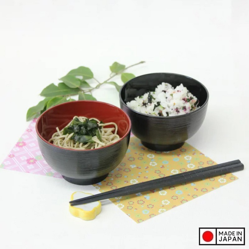 Bát tròn miệng rộng 500ml (Ø14.5×5.5cm) ■ Xuất xứ: Nhật Bản | MADE IN JAPAN ■ Kích thước:Ø145 x 55 Hmm ■ Màu sắc: Đen ~ lòng đỏ ■ Chất liệu: - Nhựa Polyester (PET) bề mặt phủ