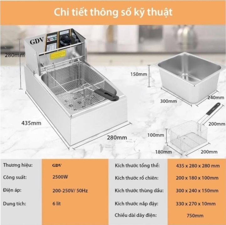 Đặc điểm nổi bật của Bếp Chiên Nhúng Điện Ngập Dầu GDV Y06L (6 lít) - Hàng Chính Hãng:
