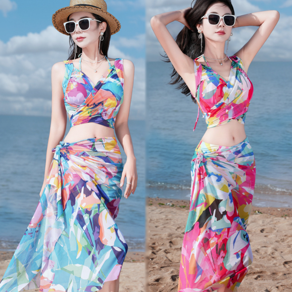 ✨Bikini Set 3 Mảnh Kèm Khăn Choàng Họa Tiết Sang Đẹp Vải Thun Lạnh BK001 MayHomes Đồ Bơi Nữ 3 Mảnh