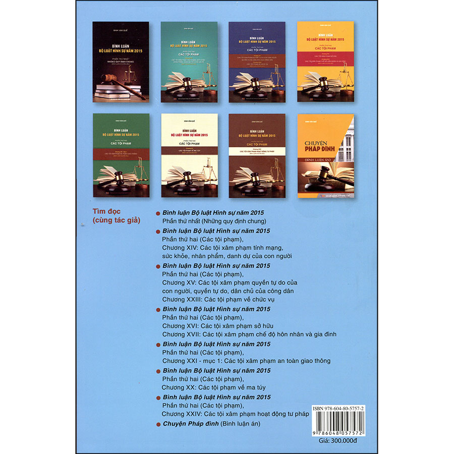 Giới thiệu sách: BÌNH LUẬN KHOA HỌC PHẦN CÁC TỘI PHẠM BỘ LUẬT HÌNH SỰ NĂM 2015 đã được sửa đổi năm 2017 BÌNH LUẬN KHOA HỌC PHẦN CÁC TỘI PHẠM BỘ LUẬT HÌNH SỰ NĂM