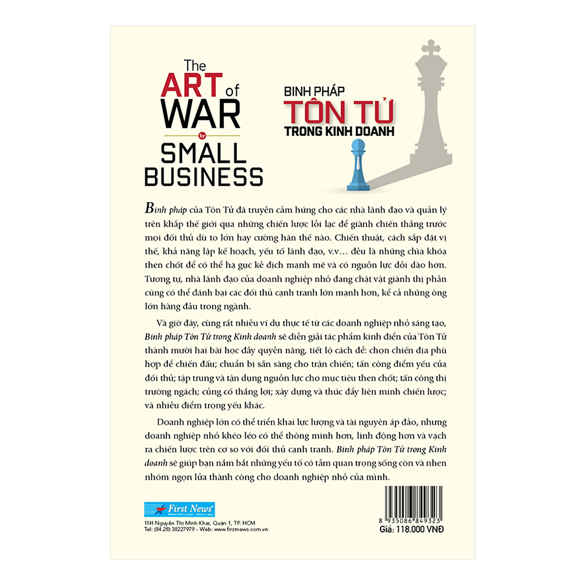 Binh pháp Tôn Tử trong Kinh doanh chính là tập hợp những chiến thuật dành cho các lực lượng nhỏ hơn có thể sử dụng để chiến thắng đối phương mạnh hơn mình. Binh pháp chỉ ra cách nhận biết và nắm lấy cơ hội, đồng thời cũng hướng dẫn bạn cách tạo ra các điều kiện thuận lợi để giành chiến thắng. Nó có thể giúp bạn giành lợi thế trong từng cơ hội.