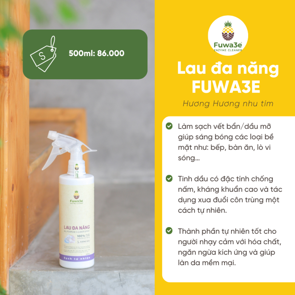 - Thông tin Bình xịt tẩy lau đa năng Fuwa3e hương nhu 500ml lau kính lau bếp và nhiều bề mặt