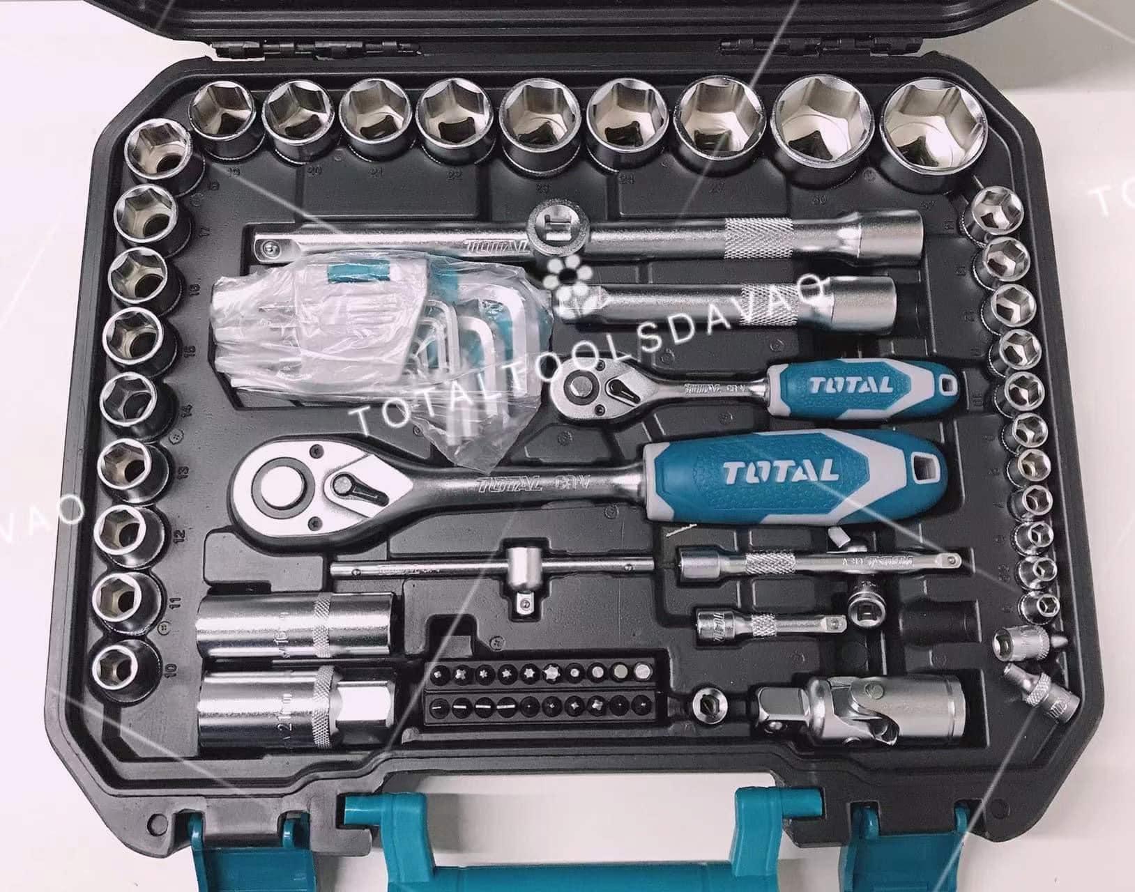 Thương hiệu đồ nghề và máy móc Total ngày càng khẳng định vị thế của mình trên thị trường, cạnh tranh thị phần với những nhãn hiệu có danh tiếng xưa giờ luôn. Total sẽ chứng minh hàng rẻ nhưng có chất lượng tốt là có thật! Total tools - Không cần bỏ số tiền lớn nhưng vẫn có cho mình những đồ nghề chất lượng. Từ những món đồ nghề đơn giản như búa, tuốc nơ vít, lục giác, cờ lê mỏ lết… được sử dụng nhiều trong gia đình cho đến những máy móc dùng điện và pin Lithium-Ion như máy khoan, máy đục bê tông, máy cưa lọng, máy cắt sắt, máy mài góc… công suất mạnh, hay được sử dụng trong nhiều ngàng công nghiệp nặng. Tất cả sản phẩm do Total sản xuất đếu khá là chất lượng và có mức giá rẻ, không như các ông lớn khác là Makita, Stanley… sản phẩm tuy tốt nhưng có giá thánh khá là đắt! Bạn thắc mắc vì sao mà công cụ - dụng cụ Total có giá rẻ ư?! Vì họ không tốn bất cứ tiền quảng cáo, quảng bá thương hiệu nào cả, từ đó mà giá thành sản phẩm rẻ! Thông số kĩ thuật -Mã sản phẩm: THKTHP21006 -Nhà sản xuất: Total -Gồm: 1 chìa vặn 1/2 ", 45T. 18 đầu tuýp lục giác 1/2 inch: 10-11-12-13-14-15-16-17-18-19-20-21-22-23-24-27-30-32MM 2 Thanh mở rộng: 125mm/ 250mm (10 "). 1 Khớp nối 1/2 inch 2 đầu nối bugi 1/2 "Dr.16MM & 21MM. 1 Bộ chuyển đổi ba chiều 1/2 " 3/8". 1 chìa vặn 1/4 ", 45T. 13 đầu tuýp lục giác: 4-4,5-5-5,5-6-7-8-9-10-11-12-13-14, 2 chiếc 1/4 "Thanh mở rộng: 50mm (2") / 100mm (4 "), 1 thanh trượt T 1/4 inch, 1 Khớp nối đa năng 1/4 inch. 8 cờ lê: 6-8-10-12-14-15-17-19MM. 1 kềm cắt chéo 6 inch, kềm mũi dài 6 inch, 1 tua vít SL6.5 100, 1 tua vít PH2 100. 14 mũi vít: T10-T15-T20-T25-T27-T30-T35-SL4-SL5.5-SL6.5-PH1-PH2-PZ1-PZ2. 9 Khóa lục giác 1.5-2-2.5-3-4-5-6-8-10MM. 20 mũi tua vít 1/4 inch: SL3, SL4, SL5, SL6, PH0, PH1, PH2, PH3, PZ0, PZ1, PZ2, PZ3, T10, T15, T20, T30, H3, H4, H5, H6 25mm. 1 tay cầm 1/4 " 150mm. 2/T
