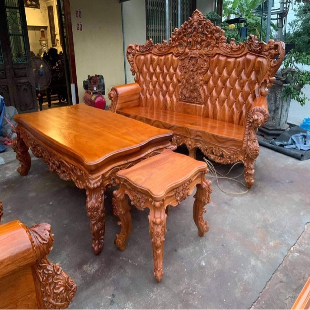 NỘI THẤT BÌNH LONG vừa hoàn thiện "Bộ ghế Hoàng Gia 6 món vách trám ván dày " chế tác từ 100% gỗ gõ đỏ quý hiếm . Trước đó cô đã tham khảo một số mẫu bàn ghế phòng khách qua website nhưng khi tận mắt nhìn và kiểm chứng chất lượng của mẫu Louis tại xưởng cô đã chốt ngay tức khắc. Và dưới đây là bộ bàn ghế Hoàng Gia xưởng hoàn thiện cho cô.
