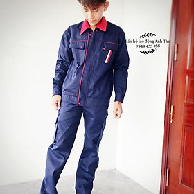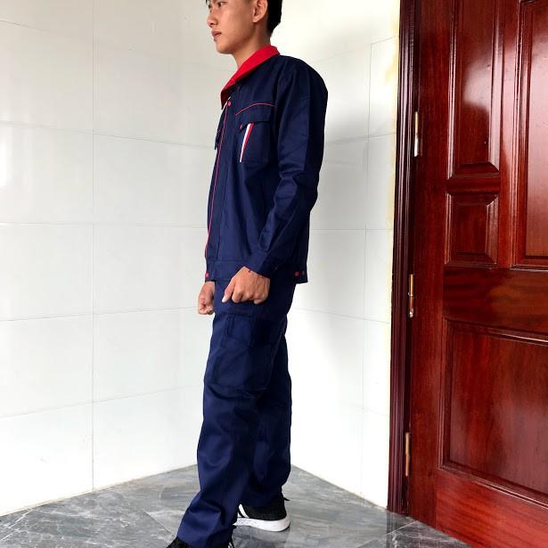 Áo được may phối màu ở phần cổ áo, vai áo và đường phối viền ở ngực áo Áo có hai túi to trước ngực có nắp đậy, có khóa kéo tiện dụng. Áo cài cúc có nẹp che cúc, có bo tay và bo đai hông, túi gài bút bên tay trái Quần được may theo dáng đứng, đai quần kết hợp thun co giãn 2 bên hông và thắt lưng với hai túi chéo to thoải mái, 1 túi hậu sâu và hai túi hộp ở đùi đáp ứng nhu cầu để đồ và sử dụng của công nhân cũng như các kỹ sư khi tham gia làm việc Cách chọn size: Size S: thích hợp cho nam từ Size M: thích hợp cho nam từ 1.63m đến 1.73m, nặng từ 54-65kg Size L: thích hợp cho nam từ 1.70m đến 1.78m, nặng từ 63-70kg Size XL: thích hợp cho nam từ 1.75m đến 1.85m, nặng từ 70-80kg