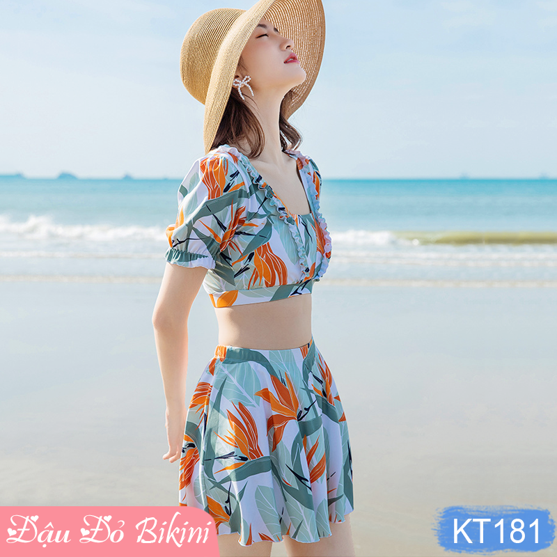 - Mẫu bikini quyến rũ mà không cần quá sexy, áo croptop bèo mix cùng quần váy duyên dáng. - Chất Lycra cao cấp, là chất liệu thun bơi lạnh chuyên dùng, co dãn đa