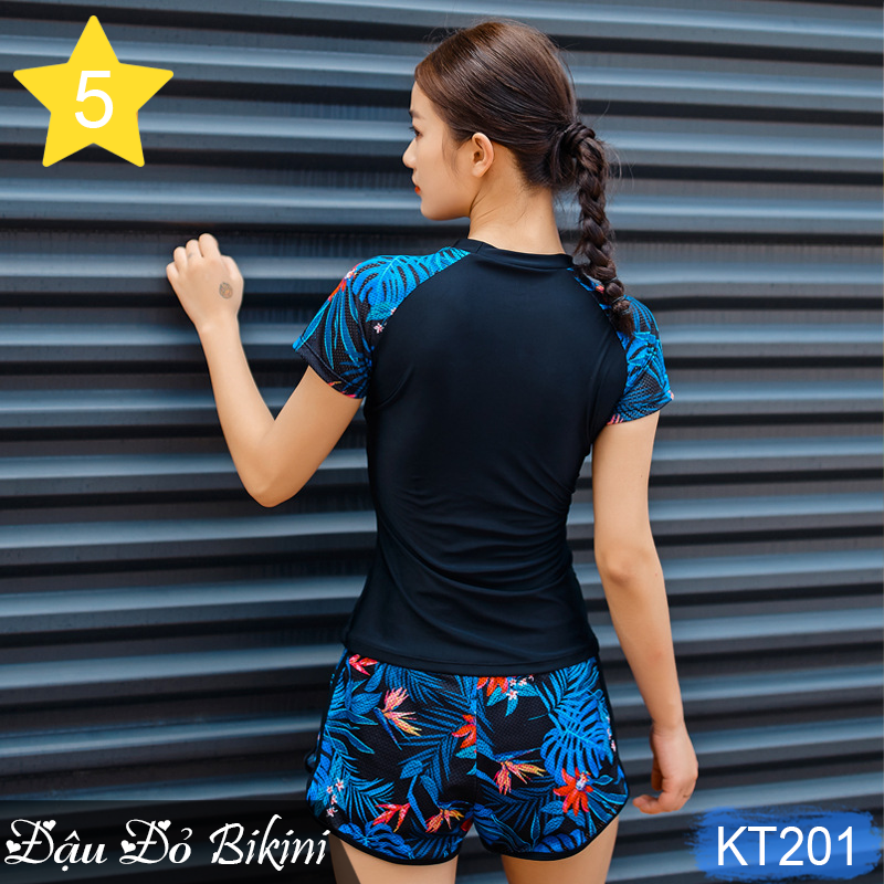 Đồ bơi nữ 2 mảnh quần sooc đùi, áo cộc tay, dáng thun che bụng, mẫu thể thao trẻ trung | KT070