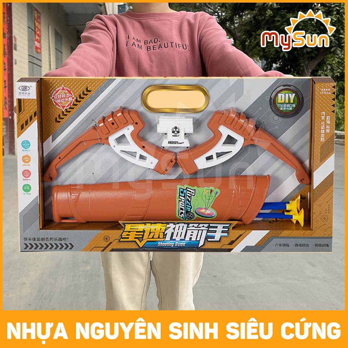 Ngày nay, ba mẹ cho con tiếp xúc với tivi, điện thoại, máy tính sớm gây ảnh hưởng xấu tới sự phát triển thể chất, trí tuệ của các bé. MySun hiểu ba mẹ ai cũng mong muốn bên cạnh con. Nhưng sự bận rộn của công việc khiến các phụ huynh không làm được điều đó. Để con tránh xa các thiết bị điện tử độc hại, hãy tìm những món đồ chơi phù hợp. MySun gợi ý bộ đồ trò chơi thể thao cây cung giá rẻ phù hợp cho trẻ em, bé trai 5 6 7 8 9 10 11 12 tuổi. Con sẽ có những phút giây thư giãn bổ ích với bộ cây cung đồ chơi này. ƯU ĐIỂM NỔI BẬT CỦA BỘ ĐỒ CHƠI CUNG CHO BÉ