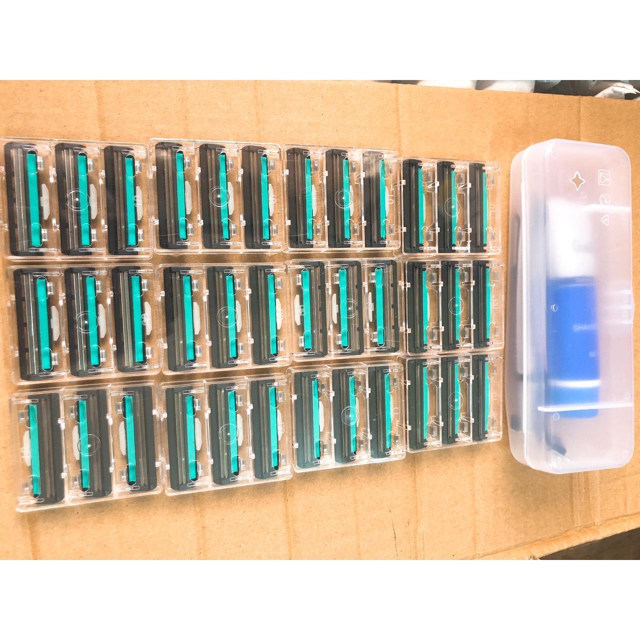 Set gồm: 1 dao cạo + 36 bàn cạo kèm dao lam + 1 tuýp kem cạo râu.