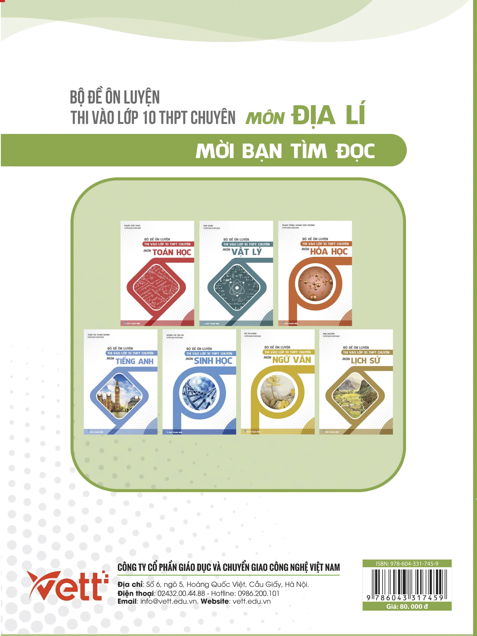 Với mong muốn đồng hành cùng các em học sinh trong việc ôn luyện môn Địa lí cho kì thi vào lớp 10 THPT Chuyên, Công ty Cổ phần Giáo dục và Chuyển giao công nghệ Việt Nam tổ chức biên soạn và phát hành cuốn Bộ đề ôn luyện thi vào lớp 10 THPT Chuyên môn Địa lí.