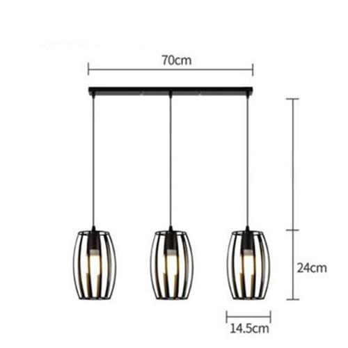 Bộ 3 đèn thả treo trần lồng trụ trang trí cao cấp kèm bóng LED và đế ốp trần Kích thước đèn 24*15 (cm). Làm bằng khung sắt sơn tĩnh điện. Phù hợp cho trang