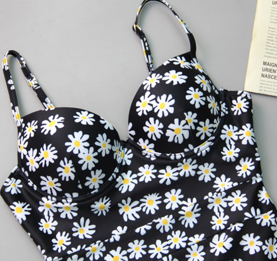 ✨Bộ đồ bơi bikini nữ 1 mảnh đi tắm biển hoa cúc kèm áo croptop ren trắng chấm bi tiểu thư hot trend 2021- B02