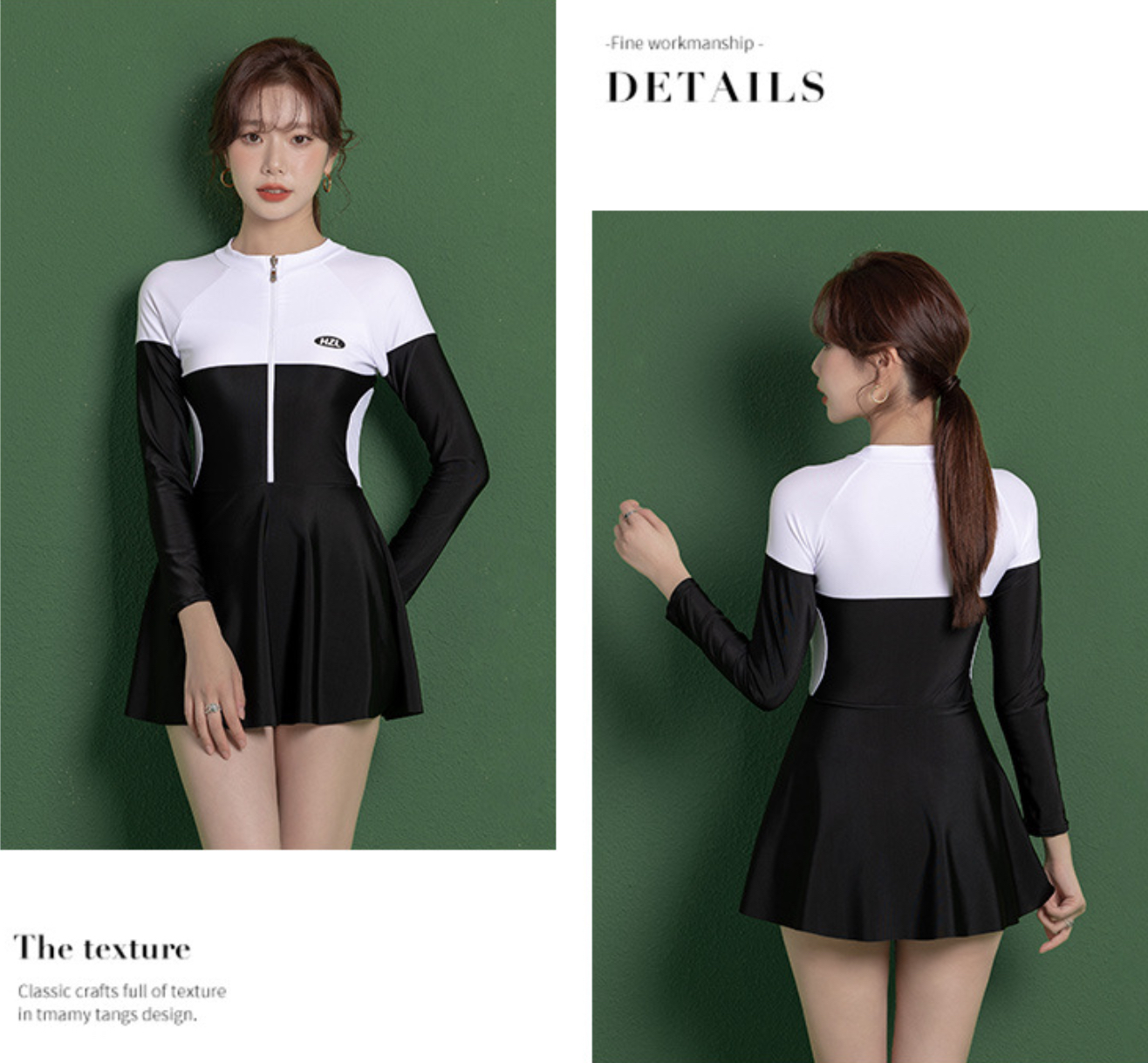 ✨Bộ đồ bơi bikini nữ 1 mảnh kín đáo đi tắm biển giấu bụng váy liền áo dài tay chống nắng - B.27