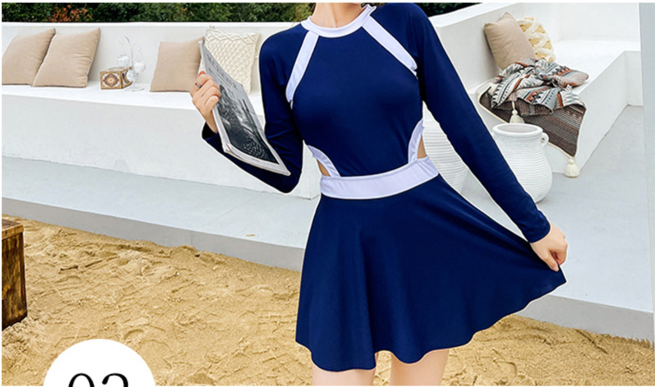 ✨Bộ đồ bơi bikini nữ kín đáo đi tắm biển giấu bụng váy liền áo dài tay - B.42