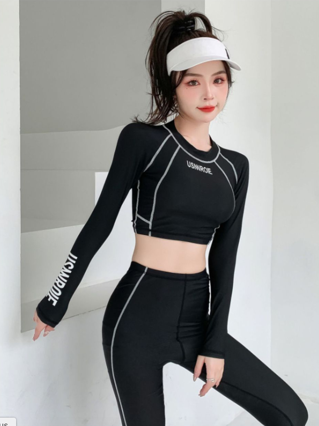 Set Đồ Bơi Nữ Rời Đùi Dài Tay Đi Biển Đi Bơi Chất liệu Polyester 95%, mật độ dệt vừa Áo có sẵn lớp đệm, hông áo có thể rút lên làm croptop cá tính