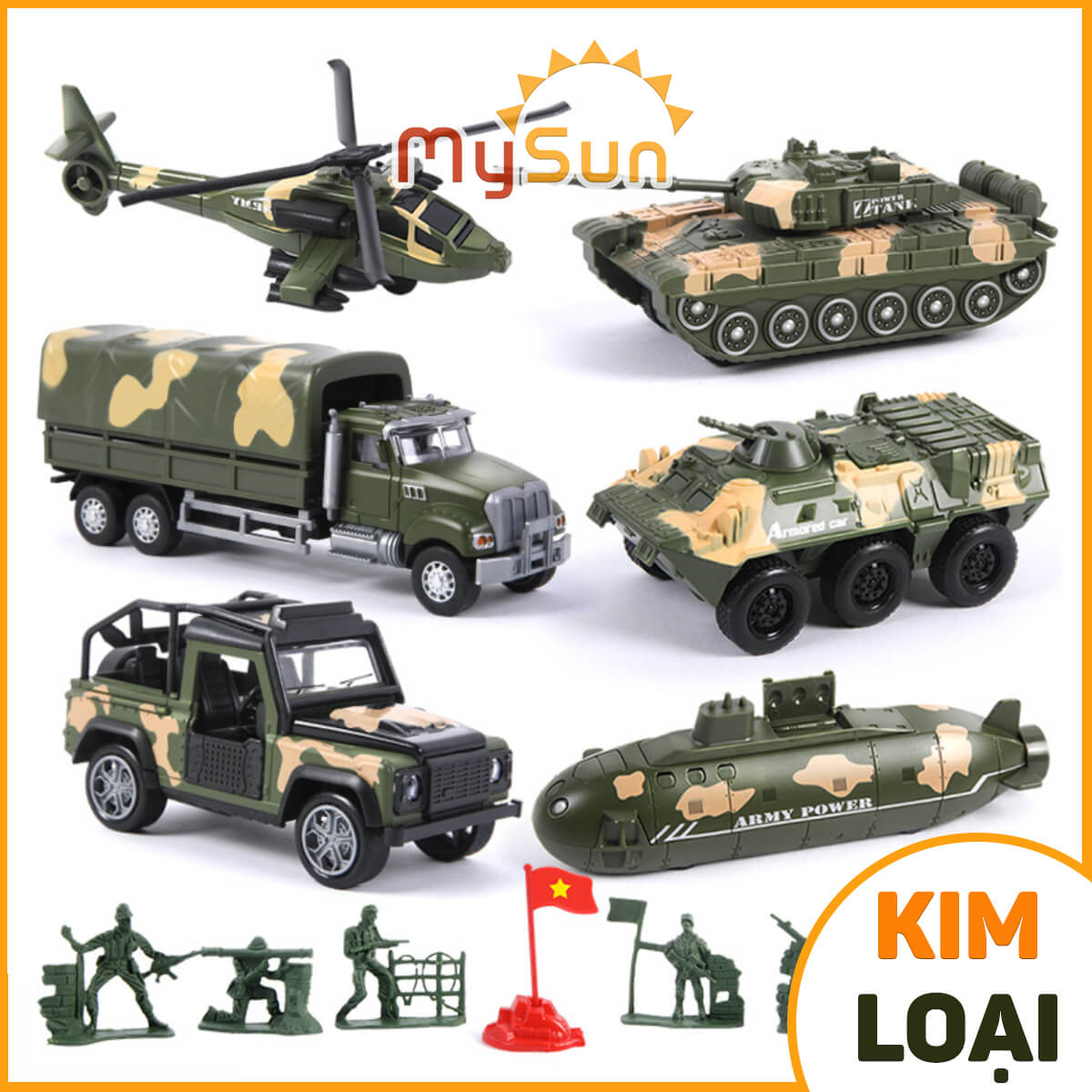 ✨Bộ đồ chơi quân đội mô hình xe tăng bọc thép, máy bay trực thăng, tàu ngầm quân sự, lính nhựa cho bé MySun
