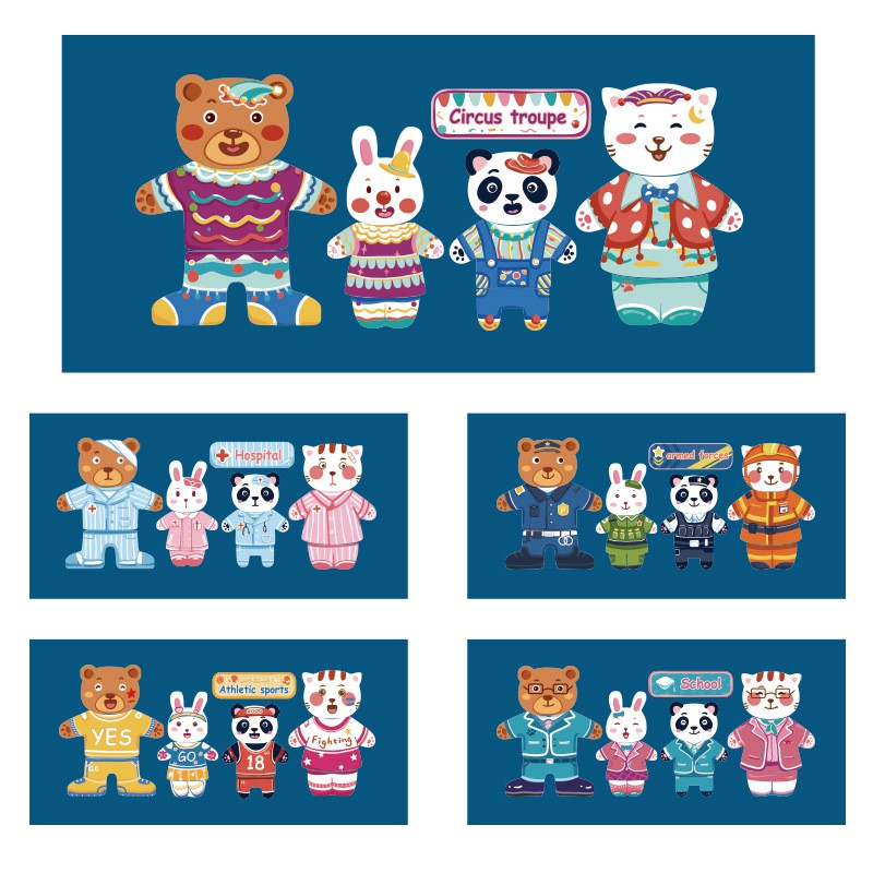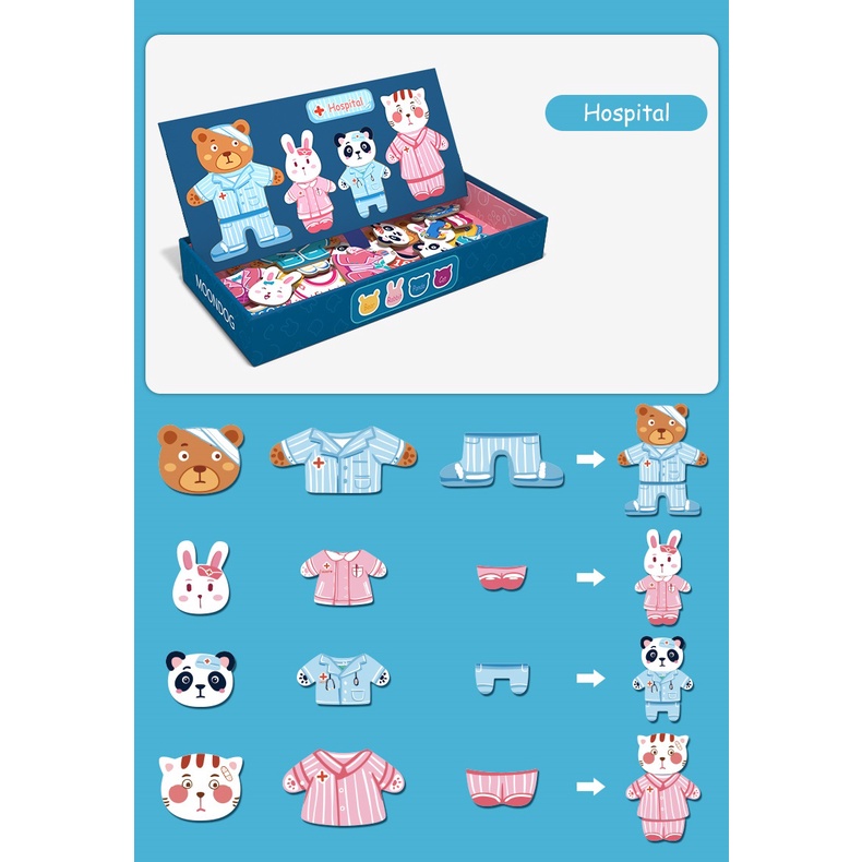 ✨Bộ Đồ Chơi Xếp Hình thay quần áo gia đình nhà Thỏ- Gấu- Động Vật- Chất liệu gỗ, có nam châm